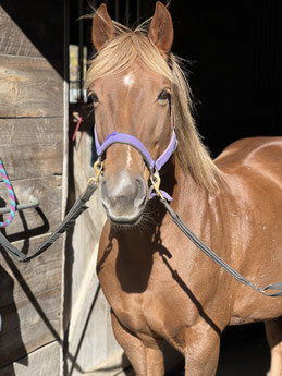 Stella is a sweet and sensitive mare with a wonderful trot and canter. She is gentle and kind with all humans. She is great for intermediate riders learning to be more proficient at the trot and